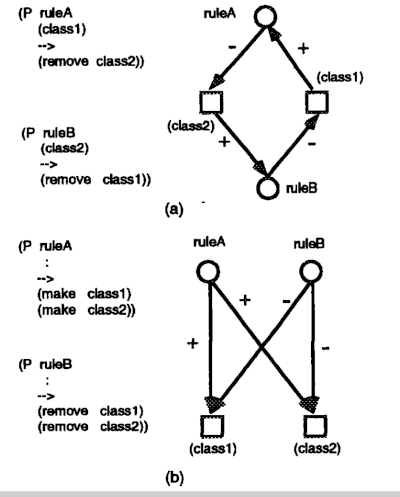 For example, in Figure 2(a), suppose two work ing memory elements initially exist: (class1) and (class2). If rules are fired sequentially, there remains (class1) when ruleA is first executed, or (class2) …